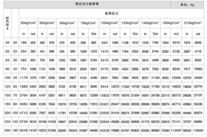 由力的計(jì)算公式可知: F = PS(P:壓強(qiáng); S:受壓面積—由油缸的缸徑、桿徑?jīng)Q定)